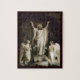 Jesus mit Armen überdehnt, während er aus dem Grab geht. Engel mit Händen klatschten in Anbetung. Kunstwerk von Carl Bloch