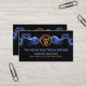 Eine elektrische blaue Blitzwelle geht über das Gesicht der Karte und zappt durch ein goldenes Glühbirnen-Logo, das Sie benutzen können. Unter dem Logo befindet sich der Firmenname, gefolgt von Ihrem angesehenen Namen und Ihren Kontaktdaten.