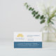 Eine Karte mit Farben und einem Bild, das Küstenleben vorschlägt. Die ausgebogte blaue umrandete Platte erwähnt Wasserwellen, während die grafische goldene Sonne Sonnenaufgang oder Sonnenuntergänge auf dem Wasser bedeutet. Groß für einen wirklichen Anwesen-Agenten, wirkliches ein Anwesenmanagement oder älteren Dienstleistungen. Verfügbar in den abwechselnden Farben mit zusammenpassenden Produkten.