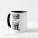 Elevator oder Lift Hersteller oder Installer Geschenkkaffee Tasse. Der Aufzug in einer Fischkonservenfabrik hat Mitarbeiter, die wie Sardinen in einen Aufzug gepackt sind