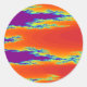 Dieses hübsche Set runder Aufkleber weist ein Fraktal auf, das einem Sonnenaufgang ähnelt. Auf der links Seite gibt es viele lila Muster, die wie weiße Dunkelwolken aussehen, und rechts davon befinden sich Bereiche mit orangefarbener Morgensonne.
