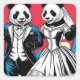 Zwei gerade verheiratete junge chinesische Pandas haben sich noch in ihrer formellen Kleidung verkleidet