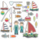 Aufkleber, einschließlich Vater und Sohn, Fischerboot, Fisch, Angellinie und mehr