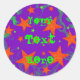 Aufkleber mit lila und grünem Hintergrund, verstreut mit zauberhaften, leuchtenden orangen und grünen Sternen und "Dein Text hier" in grün geschrieben. Ein lila, grünes und orangefarbenes Design für Sie, um Ihre eigenen Texte, Bilder und Ideen hinzuzufügen. Der Text kann leicht mit der Vorlage geändert werden, oder klicken Sie auf die Schaltfläche "Anpassen", um weitere Änderungen vorzunehmen. Erstellt mit digitalen Techniken von Jess Perry.