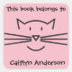 Schwarze Cat Face Kontur Buchzeichen Sticker mit anpassbarer Hintergrundfarbe und Text.