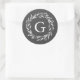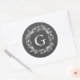 Individuelle Rundaufkleber, die mit Ihrer Familienmonogramm-Initial- oder anderen benutzerdefinierten Texten personalisiert sind. Verwenden Sie die Designtools, um die Hintergrundfarbe und die Schriftart zu ändern, um Ihr eigenes, einzigartiges Design weiter anzupassen.