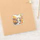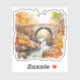 Ein Niedlicher Herbstaufkleber mit einer Brücke über einen Fluss und bunten Herbstblättern.
