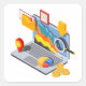 Ein Laptop mit vielen verschiedenen Ikonen auf dem Bildschirm. Dieses Design sieht auf diesen Aufklebern wirklich effektiv aus