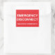 Ein NOTFALLDISCONNECT Aufkleber mit spanischem Untertitel. Desconexión de emergencia.