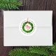 Elegante, rustikale Aufkleber mit einer grünen Aquarellkranz, die von einem roten Band mit "Joy" in einem roten Drehbuch auf weißem Schiffshintergrund aufgehängt wird. Personalisieren Sie die festlichen Rücksendeadressen-Aufkleber, indem Sie Ihren Namen und Ihre Adresse hinzufügen.