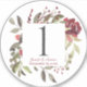 Single dekorative Tischnummer Aufkleber mit unserer Woodland Rose, Aquarell mit blumengeschmückten Blätter und Beeren in lebhaften Herbst- oder Winterschattierungen Bordeaux, Salbei Grün und Grau. Personalisieren Sie mit Veranstaltungsdatum und Namen des glücklichen Paares. Die Tischnummer ist ideal für die Etikettierung einer Champagnerflasche für den Tisch oder einer leeren Weinflasche, die als Kernstück verwendet wird.