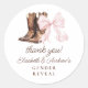 Stiefel oder Bows Gender Reveal danke Ihnen Aufkleber mit einem niedlich rosa Schleifenbogen.