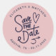 Elegante, Save the Date gummiartige Briefmarke mit handgeschriebenem Dekorationsskript "Save the Date" und einem niedlichen Herz in der Mitte. Alle Informationen sind in elegantem Skript-Schriftart umschlossen, sodass sie leicht personalisiert werden können.