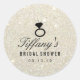Brautparty Aufkleber mit Ring, Text und Glitzer Hintergrund. Wählen Sie bei Bedarf Ihr eigenes Hintergrundbild oder Ihre eigene Farbe.