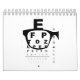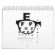Eine typische Optikertestkarte mit weißem Hintergrund und Blässe und Brillen