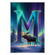 Bringen Sie majestätische Winterpracht in Ihren Raum mit diesem Aurora-Buchstabe-M-Wandbild. Ein leuchtender Buchstabe M erhebt sich aus einem schneebedeckten Wald, beleuchtet von fließenden Bändern des Nordlichts in schimmernden Tönen von Türkis, Smaragd und Violett. Ein sanfter Elch steht im Vordergrund, sanft beleuchtet vom Aurora-Glanz, und fügt diesem magischen Winterbild eine friedliche Waldidylle hinzu.