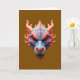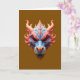 Lebendiges blaues und korallenrotes Drachenmaskendesign mit komplizierten Schuppen und gehörntem Kamm, gefertigt für kühne Kleidung. Helle Gradientenpalette, Fantasy-Motiv, ideal für aufregende, ungewöhnliche Karten und Accessoires.