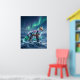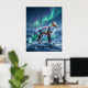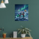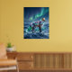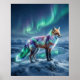A graceful aurora fox stands on a frozen ridge under a glowing northern sky, its sleek body infused with flowing celestial light. Shades of emerald, teal, violet, and soft pink illuminate its fur, creating a refined and magical presence. The snowy landscape, distant peaks, and shimmering stars enhance the peaceful, mystical atmosphere. This elegant fusion of wildlife and cosmic energy makes a stunning statement piece for modern interiors, winter decor, and collectors of premium fantasy-inspired artwork.