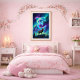 Bringen Sie strahlende nordische Schönheit in Ihre vier Wände mit diesem Aurora-Buchstabe-E-Plakat. Ein leuchtendes E ragt über einem schneebedeckten Wald auf, beleuchtet von fließenden Bändern des Nordlichts in reichen Tönen von Smaragd, Türkis und Violett. Die Aurora schimmert über den nächtlichen Himmel und wirft einen sanften Schimmer über die ruhige Winterlandschaft und beleuchtet sanft den friedlichen Elch, der majestätisch am Fuße des Monogramms steht.