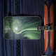 Das ist ein naturbelassenes Foto des arktischen Nachthimmels über Nordnorwegen, gefüllt mit schönen grünen Nordlichter und dem Licht des Vollmonds. Lage auf dem Foto: Ringvassøya, eine Insel im Nordwesten von Tromsø im Norden von Skandinavien.