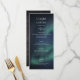 Dieses elegante Hochzeitsmenü zeigt den Nachthimmel mit Polarlichtern. Personalisieren Sie es für Ihre Bedürfnisse. Sie finden passende Produkte in meinem Shop.