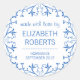 Schönes blau-weiß dekoratives Muster. Fügen Sie Ihren eigenen Namen und Text hinzu. Sie können die Wörter entweder einfach als "hausgemacht" verlassen oder sie ändern, um den hausgemachten Rasberry-Jam oder den Namen von dem zu lesen, was im Glas ist!