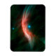 Stellarwinde, die aus dem Riesenstar Zeta Ophiuchi fließen, machen Wellen im Staub, während er sich nähert, und erzeugen einen Bugschock, der als glühende Gossamerfäden angesehen wird, die für diesen Stern nur im Infrarotlicht zu sehen sind. Zeta Ophiuchi ist ein junges, großes und heißes Sternchen, das etwa 370 Lichtjahre entfernt liegt. Die feinen Filamente aus dem Staub rund um den Stern leuchten vor allem bei kürzeren Infrarot-Wellenlängen, hier grün dargestellt. Der Bereich des Schocks Pop dramatisch bei längeren Infrarot-Wellenlängen ab, wodurch die roten Lichter entstehen.
