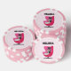 Diese Poker-Chips haben zwei raffinierte Katzen, eine schwarz, eine weiß sitzend in einem rosa Stuhl aus der Mitte des Jahrhunderts auf einem weißen Hintergrund mit rosa Punkten. Passen Sie Ihren Text mit den Vorlagen an.