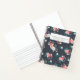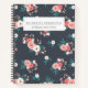 Ein Notizbuch für Hochzeitsexperten und Veranstaltungsexperten, mit Halbblutseiten, die perfekt zum Entwerfen von Kundenkonzepten und zum Schreiben von Notizen sind. Das Design ist mit einem dunkelgrauen Hintergrund überzogen, der mit einem Muster handgezeichneter rosa Rosenbouquets versehen ist. Personalisieren Sie Ihre Geschäftsinformationen durch Hinzufügen.