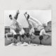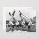 Auf dieser Postkarte sehen Sie ein Vintages Foto von vier männlichen Turnieren, die ihre Fähigkeiten zeigen, während sie eine "ausgewogene" Mahlzeit genießen.