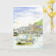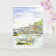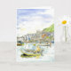 Ein junger Mann, in einem kleinen Dinghy (zart), der den Fowey River überquert, um sein Segelschiff, das auf der polruischen Seite lag. Die malerische, historische Stadt Fowey liegt im Hintergrund. Der Turm der alten Kirche St. Fimbarrus ist deutlich sichtbar, auch das Gebäude aus rotem Ziegelstein, das Fowey Gallants Segelclub. Von der ursprünglichen Wasserfarbe von Christine Hudson