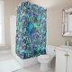 Dieser bunte Duschvorhang stylized Entwurf des binären Codes in den Schatten des Blaus und des Türkises und der Touch von Lila. Ein Spaßentwurf für den Geekprogrammierer diese Liebekodierung. Auch verfügbar eine ist das Zusammenbringen Duschenmatte.