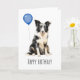 Adorable Geburtstagskarte mit einem schönen schwarz-weißen australischen Schäferhund. Es ist sicher, ein Lächeln ins Gesicht eines Aussie Hundeliebhabers zu bringen.