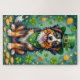 Celebrate St. Patrick’s Day with this joyful Australian Shepherd artwork featuring a festive pup dressed in Irish accessories. With shamrocks and lucky charm details, this design is perfect for Aussie lovers, dog parents, and holiday gifting.