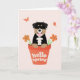 Fun Illustration für Frühling und Sommer für alle Hundefreunde. Ein australischer Hirte, der aus einem Blume-Topf herausspringt, umgeben von zwei Blume und Schmetterlingen.