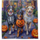Adorable australische Schäferhunde, die in verspielten Halloweenkostümen gekleidet sind, tragen Kürbiseimer, während sie unter dem mondbeleuchteten Himmel tricksen oder behandeln. Dieses festliche Design hebt den flauschigen Mantel der Rasse, intelligente Augen und spielerische Persönlichkeit hervor, die perfekt die gespenstische und dennoch lustige Atmosphäre Halloween-Abends einfangen. Eine wunderbare Feier für Hundefreunde und Halloween-Fans gleichermaßen.