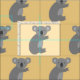 Australisches graues Gewebe des Koalabärn-Mustergewebes DIY. Tierentwurfsdruck des niedlichen australischen wilden Lebens für Babydusche und Kinderzusätze. Kundenspezifischer Farbhintergrund hinter der Illustration. Machen Sie die Kleidung und die Dekorationen Ihre eigenen Kinder. Neutrale Ikone des Geschlechtes für Jungen und Mädchen.