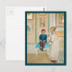 Niedliches kleines Mädchen, das eine Puppe hält, geht zu ihrem Bruder, der in "Time Out" zu sein scheint. Schöne Kunst des schwedischen Künstlers Carl Larsson.