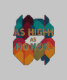 Le design des t-shirts est caractérisé par un design vectoriel plat avec des formes géométriques qui se chevauchent dans une palette de couleurs éclatantes. Le texte "As High as Honor" est centré dans la composition et écrit dans une police multicolore.