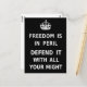 Sie kennen den ikonischen Slogan "Keep Calm And Carry On" aus dem Zweiten Weltkrieg, aber wussten Sie, dass das Original-Calm-Poster in einer Reihe von drei Plakaten, die vom britischen Informationsministerium während des Krieges produziert wurden, an dritter Stelle stand? Der Slogan Freiheit ist in Gefahr. Verteidigen Sie es mit All Your Might, war das zweite Plakat der Serie zur Stärkung der öffentlichen Moral und wurde auf Schaufenster in ganz Großbritannien. Die Botschaft ist heute ebenso relevant wie damals. Hier ist der ursprüngliche ikonische Slogan und Krone in weiß. Es wurde 1939 von einem britischen zivilen Diener entworfen. Dieser eigentliche Schriftart existiert nicht in Schriftart- oder Schriftart-Softwarepaketen der Gegenwart. Dieser Schriftart kann nicht dupliziert werden. Der Text und die Krone, die Sie sehen, sind der Originaltext und die Krone von 1939. Aus den Archiven der britischen Regierung genommen, ist unser Freedom Is In Peril Slogan und Krone ein exaktes, qualitativ hochwertiges Duplikat des ursprünglichen Posters von 1939. Lass dich nicht von Nachahmungen täuschen! Wir haben die besten Preise auf Zazzle! P.S.: Alle Produkte sind komplett anpassbar. Wählen Sie JEDE Hintergrundfarbe oder Produktart, die Sie mögen!
