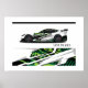 Poster mit einem Foto-Druck eines schlanken Rennsportwagens. Im Value Matte Poster Papier gezeigt, aber Sie können Upgrade & anpassen. Anpassen oder kaufen, wie gezeigt. Börsenbild freepik.com