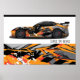 Poster mit einem Foto-Druck eines schlanken Rennsportwagens. Im Value Matte Poster Papier gezeigt, aber Sie können Upgrade & anpassen. Anpassen oder kaufen, wie gezeigt. Börsenbild freepik.com