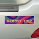 GROOVY TIMZ AUTOAUFKLEBER IM FREIHEITSHUND STORE GROSSE Autoaufkleber. Dieser sagt Groovy Timz. Das ist psychedelisches Kunstwerk.