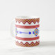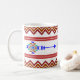 Montrez votre fierté indigène avec cette tasse blanche, turquoise et bleue de Chainé Dolls.