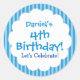 Autocollant 4th Birthday Blue Stripes V1C Ce joli autocollant rayé ajoute une jolie touche à vos invitations d'anniversaire et à vos faveurs de fête d'anniversaire. Si mignon ! Personnalisez avec le nom de la fille ou du garçon d'anniversaire ! <br>() Visitez mon<br>() Boutique d'anniversaire<a href="http://www.zazzle.com/jaclinart_birthday">() pour plus de choix d'anniversaire.