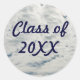 Autocollant « Classe de » avec fond de nuages. Modifiez l'année, ajoutez ou modifiez le texte, la couleur et la police pour personnaliser votre autocollant.
