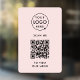 Un modèle simple d'autocollant de fenêtre vinyle personnalisé de couleur rose blush dans un style minimaliste moderne qui peut être facilement mis à jour avec votre logo d'entreprise, code QR et texte personnalisé.