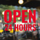 Autocollant de fenêtre rouge moderne ouvert 24 heu