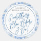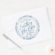 Ajoutez une touche charmante à vos cadeaux de bourse de mariage avec cet autocollant « Something Blue Before I Do ». Entouré d'hydrangeas aquarelles et de fleurs blanches douces, ce design rond est parfait pour sceller des enveloppes, habiller des sacs de cadeaux ou ajouter à la décoration de fête. Personnalisez avec le nom de la mariée et les détails de la douche.