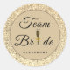 Sticker Fête des mariées avec élégante image en verre de champagne et arrière - plan faux parties scintillant.